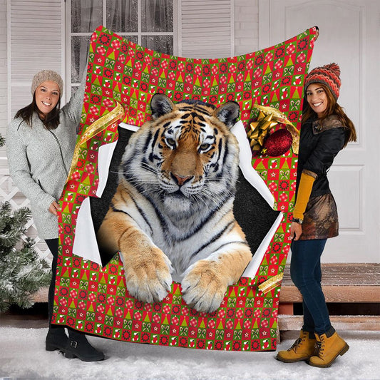 Tiger Torn Christmas Gift Fleece Blanket