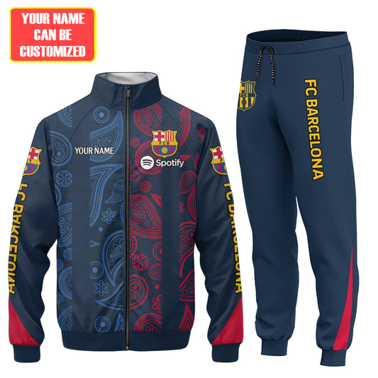 Personalized Barçelona FC Zipper Stand Collar Jacket & Sweatpants