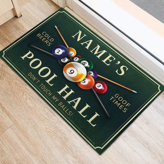 Personalized Name Pool Hand , Dont touch my balls ! Billiards Doormat