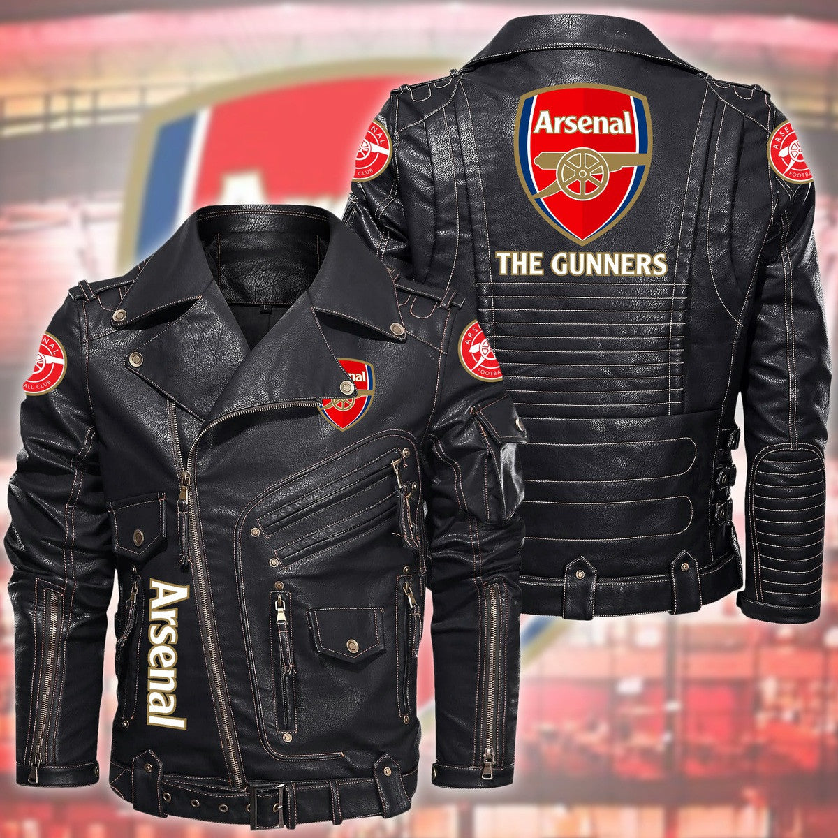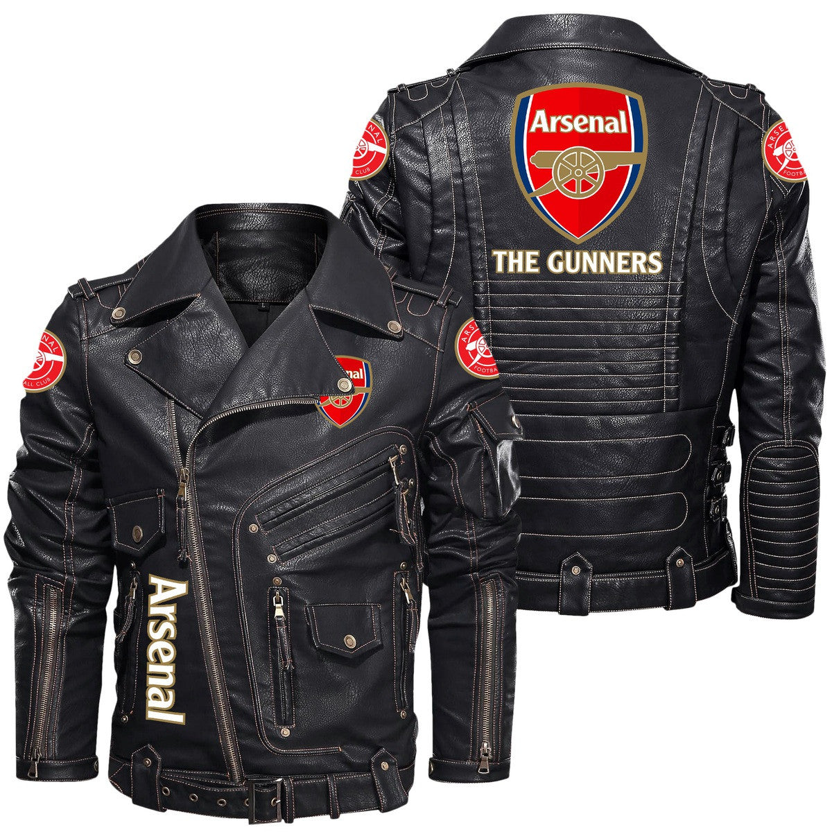 Arsenal Belt Solid Zipper Street Leather Jacket Q040902