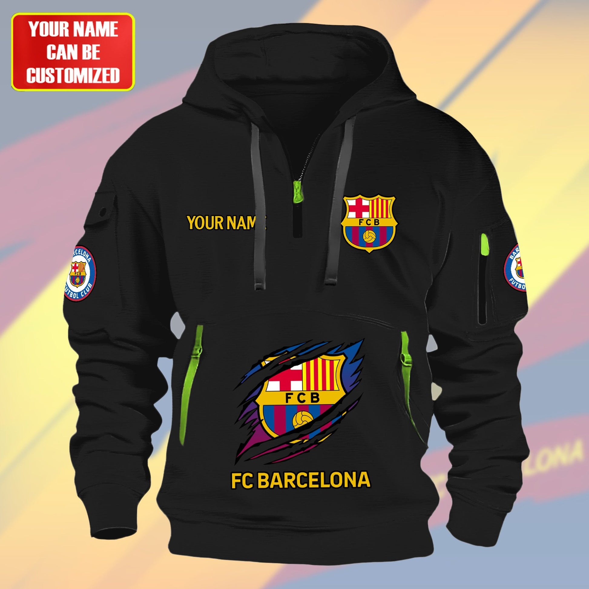 Personalized FC Barcelona Tear Zip-Hoodie Cotton Jacket