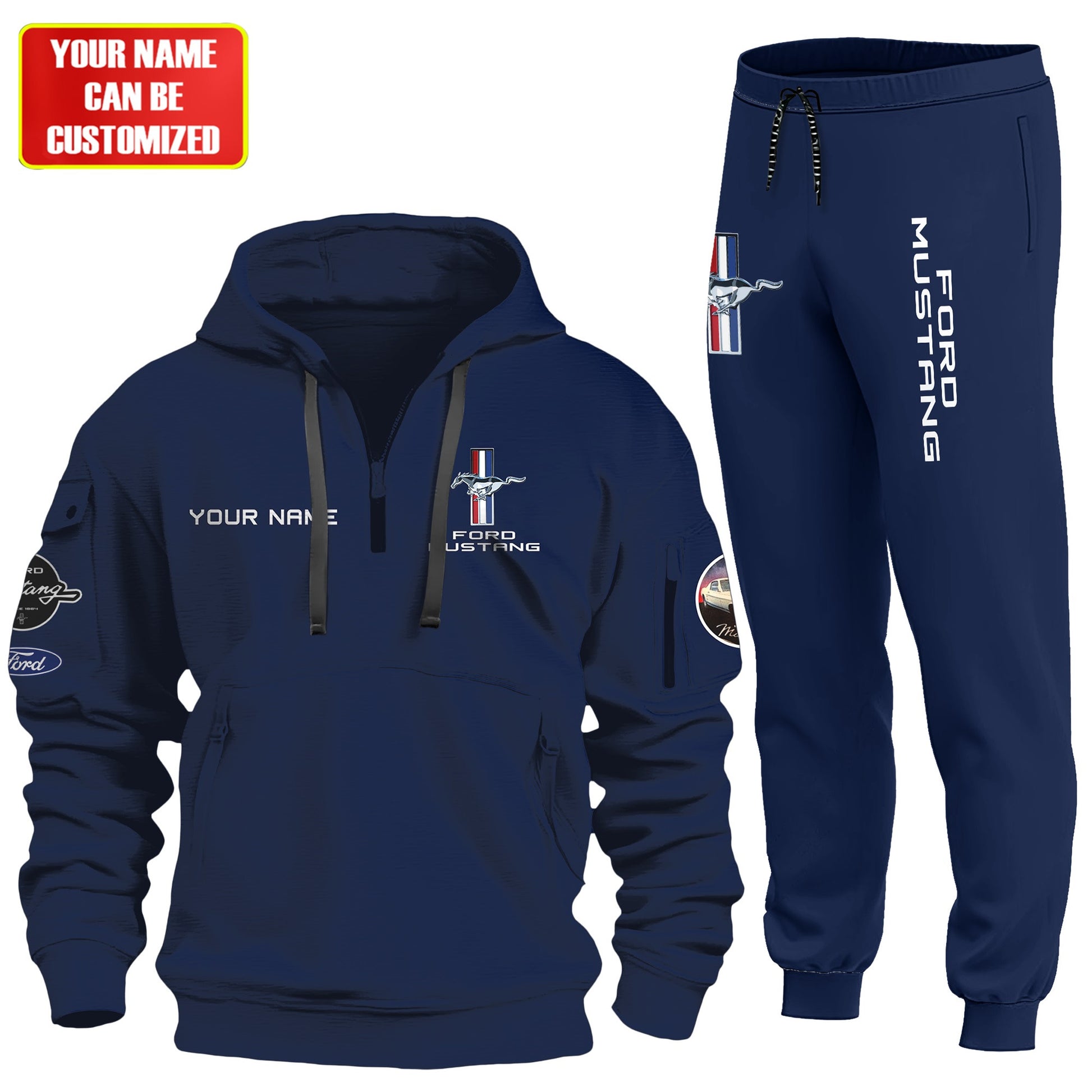 Personalized F Mustang Vintage 3D Cotton Hoodie and Sweatpants set