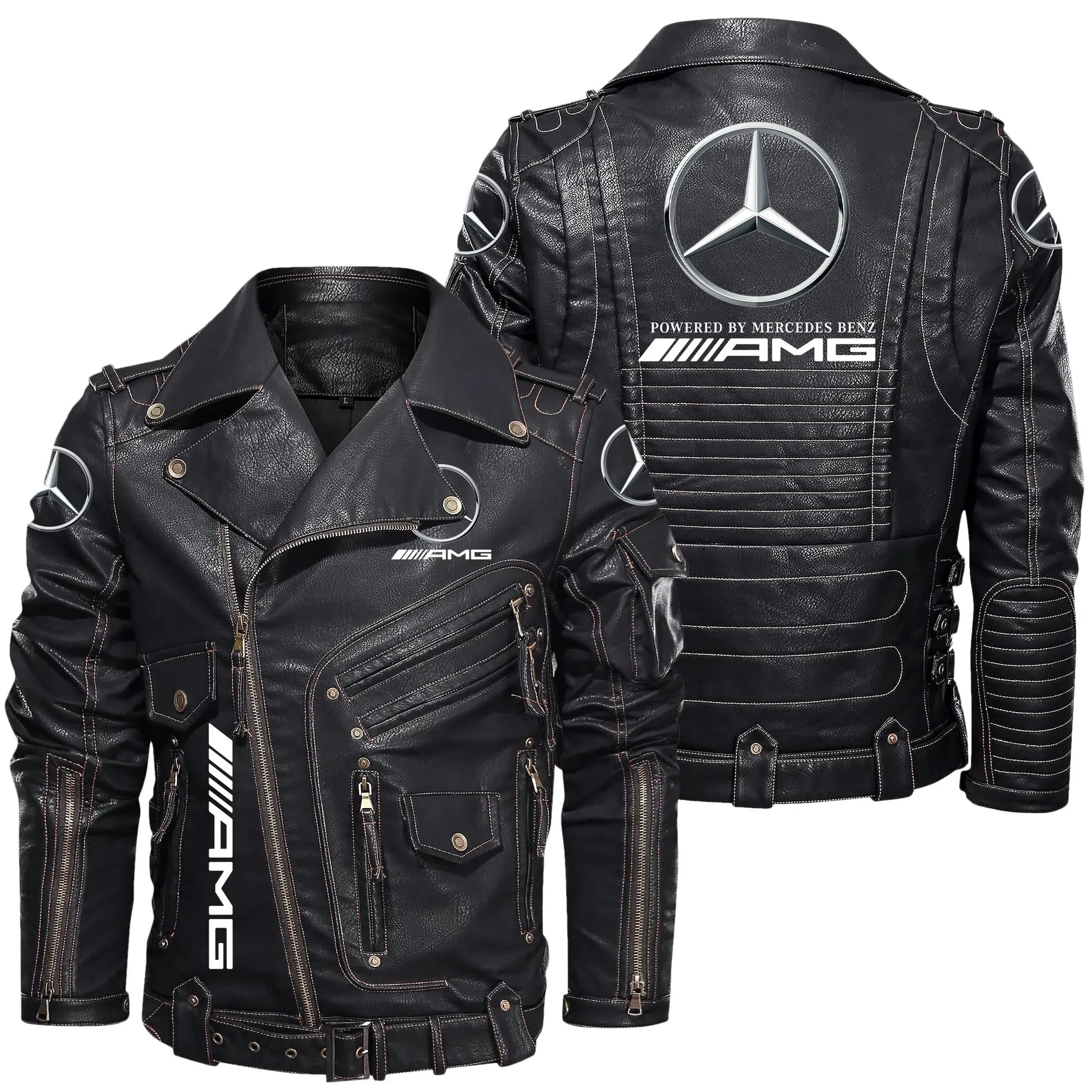 Merc AMG Belt Solid Zipper Street Leather Jacket