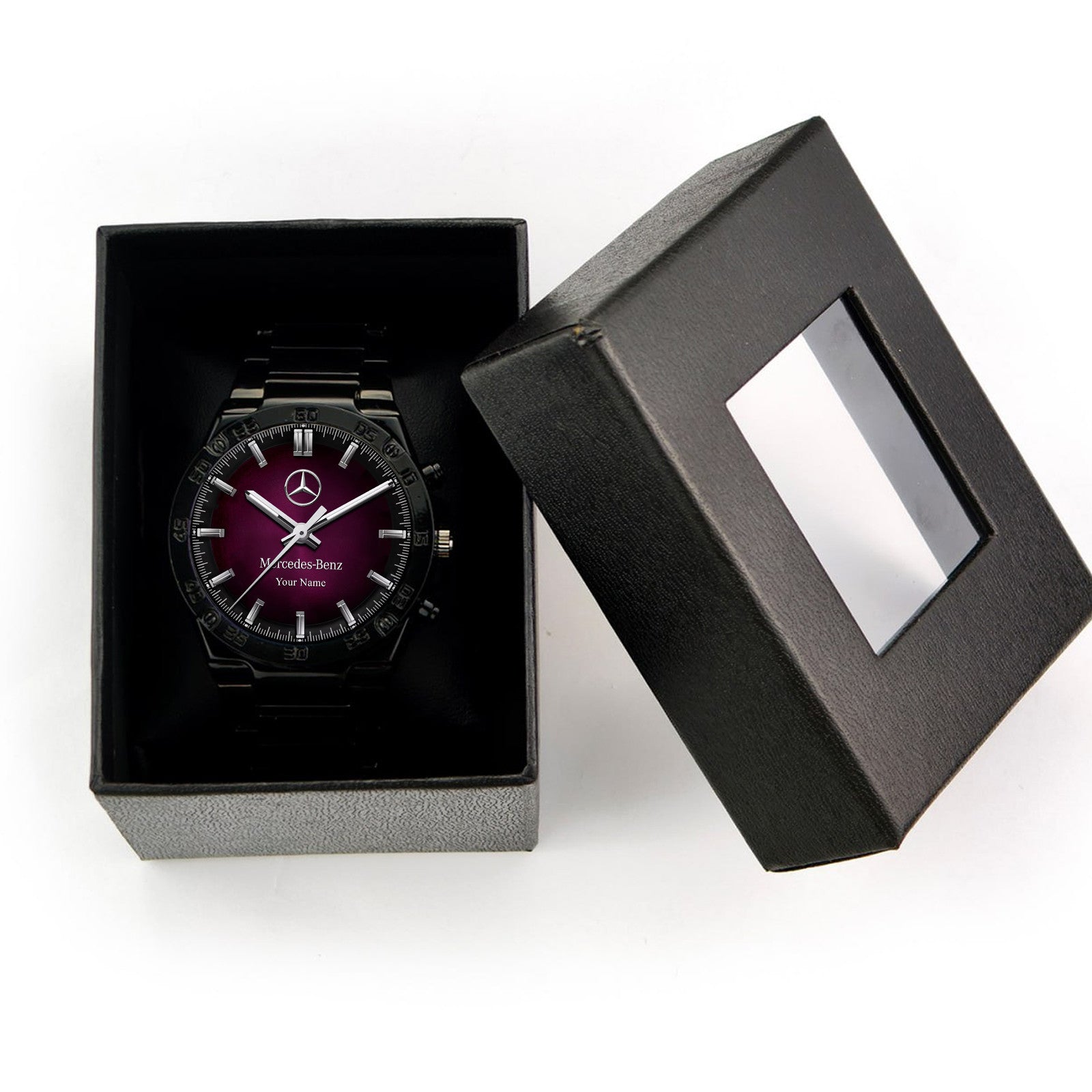 Personalized Merc Purple Line Dial Steel Watch