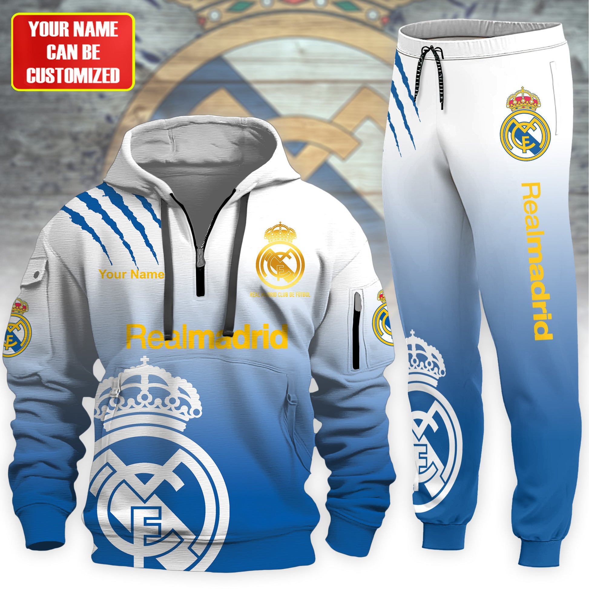 Personalized Real Madrid Tear 3D Cotton Hoodie and Sweatpants set V2