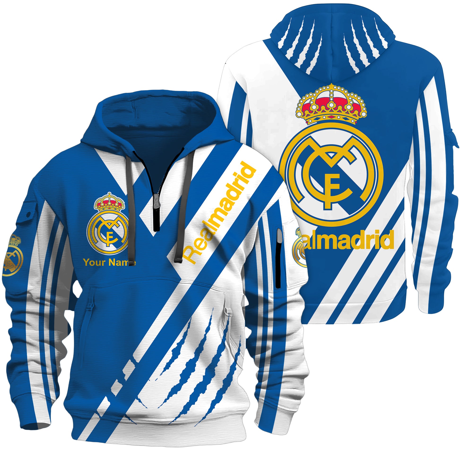 Personalized Real Madrid 3D Zip-Hoodie Cotton Jacket V2